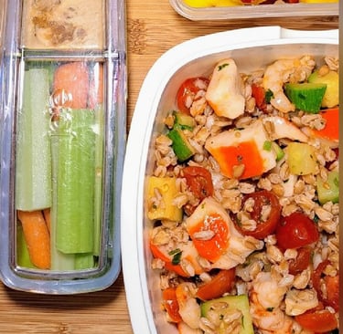 I've seen many people struggling with the school or work meals, so i decide to introduce the Batch Cooking service in my offer: a selection of pre-prepared ingredients that can be mixed and matched to create healthy, varied meals for work or school. I usually prepare a variety of carbs (rice, farro, couscous, pasta, etc.), proteins, vegetables, legumes, and two or three dressings to tie everything together.